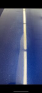 こちらの写真は、下地処理中の塗装面で、右側半分が機械で磨いたあとで、左側半分は磨いていない写真になります。